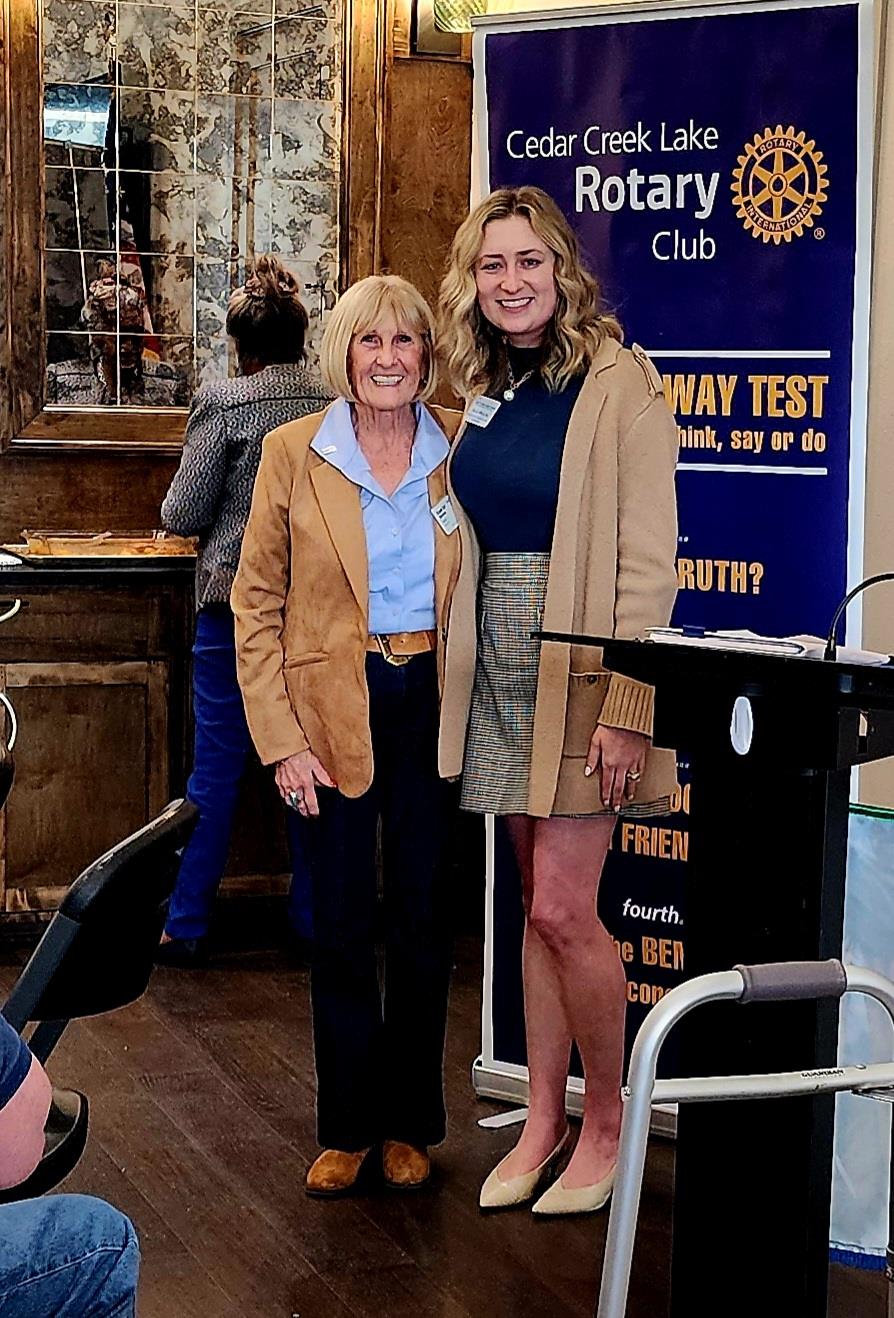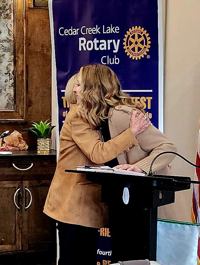 Rotary Club of Cedar Creek Lake President Elect Trish Deeds (right) presents a
